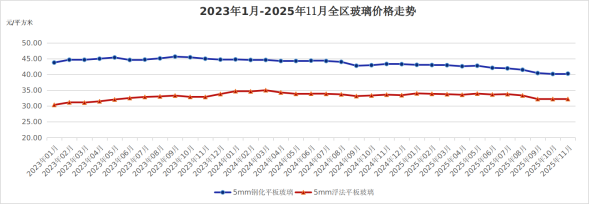 5mm浮法平板玻璃、5mm钢化平板玻璃11月份平均价格分别为每平方米32.21元、40.25元。环比,5mm浮法平板玻璃持平,5mm钢化平板玻璃价格略涨0.27%;同比分别下降4.21%、7.07%。