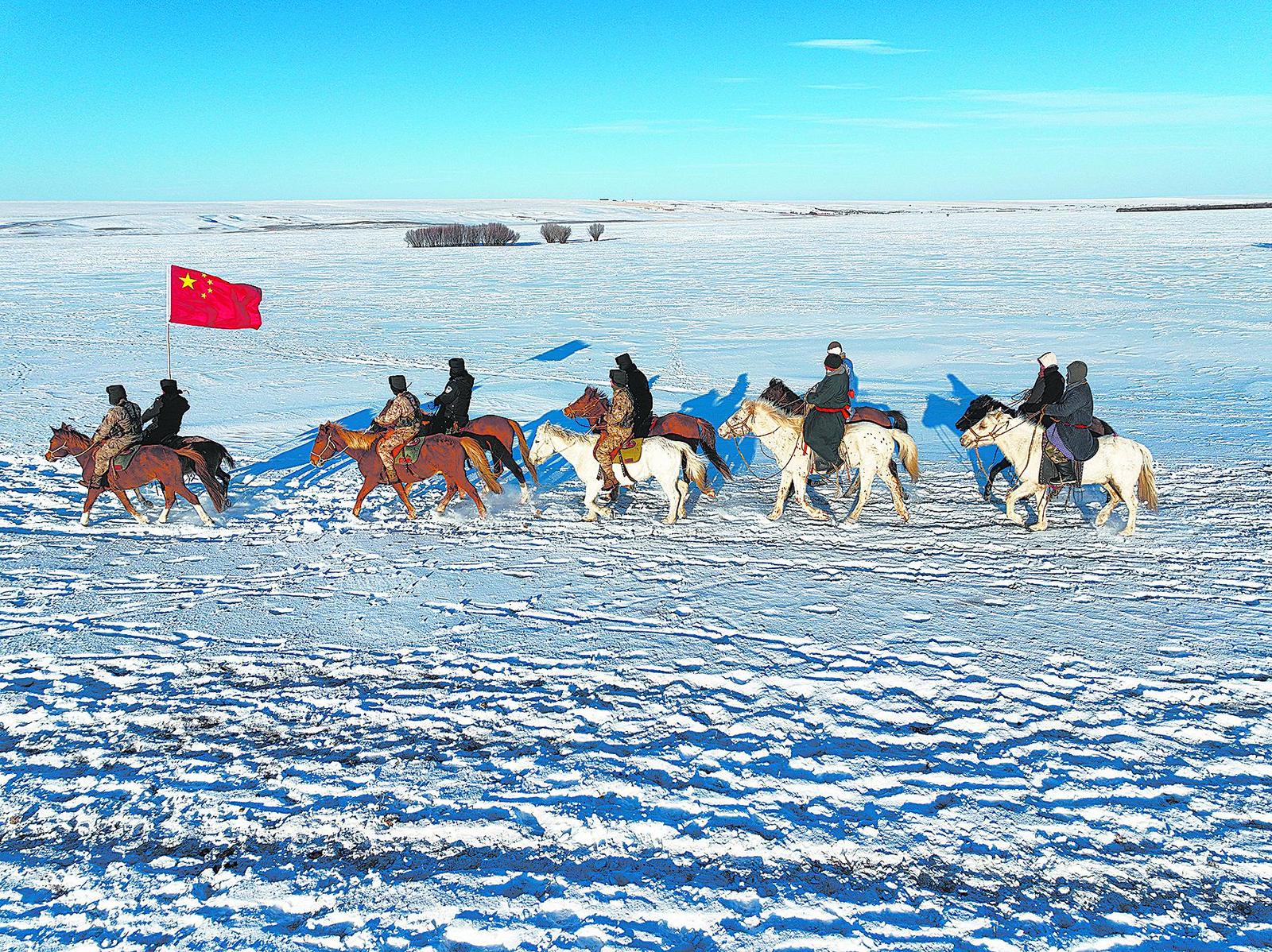 在新巴尔虎右旗贝尔苏木的晨光中,56岁的牧民图门跨上马鞍,揣上望远镜,踏上了巡边之路。“把蒙古包变成哨所,把放牧路线变成巡逻路线”,这是图门一家三代近一个世纪坚守的庄重誓言。