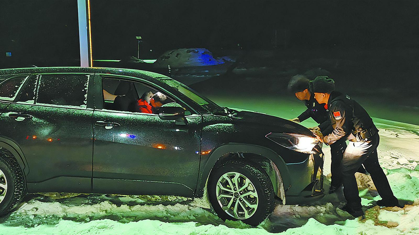 民警帮群众推车脱困