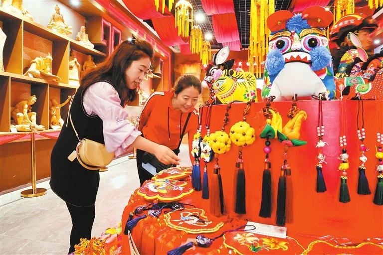 游客在庆阳香包民俗文化节上选购商品。新甘肃·甘肃日报通讯员 盘小美