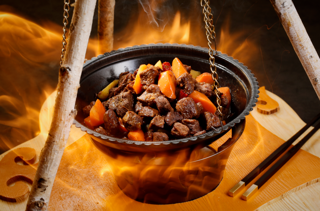 呼伦贝尔是中国北方少数民族的族源地,鄂伦春族、鄂温克族自古就生活在大兴安岭原始森林当中,曾经创造出了灿烂的狩猎文明。鄂伦春族、鄂温克族原以狩猎为生,生活方式和民俗文化带有浓郁的狩猎民族特色。饮食以兽肉为主,喜欢食用狍子、鹿、犴、野猪、熊肉,禁猎后养殖的鹿肉成为其特色的美食。鹿肉肉性温和,有补脾益气、温肾壮阳的功效,高蛋白、低脂肪,肉质细嫩、味道美、瘦肉多、结缔组织少,可制作红烧鹿肉、鹿肉干、炖鹿排、牙签鹿肉等多种菜肴。红烧鹿肉将鹿肉洗净,切块焯水。锅放入油烧热放入鹿肉炸制火红色捞出。另起锅入油下入葱姜、香料炒香放入炸好的鹿肉小火炖制熟烂,也可加入胡萝卜块一起红烧,颜色红润、肉质软嫩。红烧鹿肉美味源自于鹿肉炸制后再红烧炖煮后所释放出的醇厚咸香。