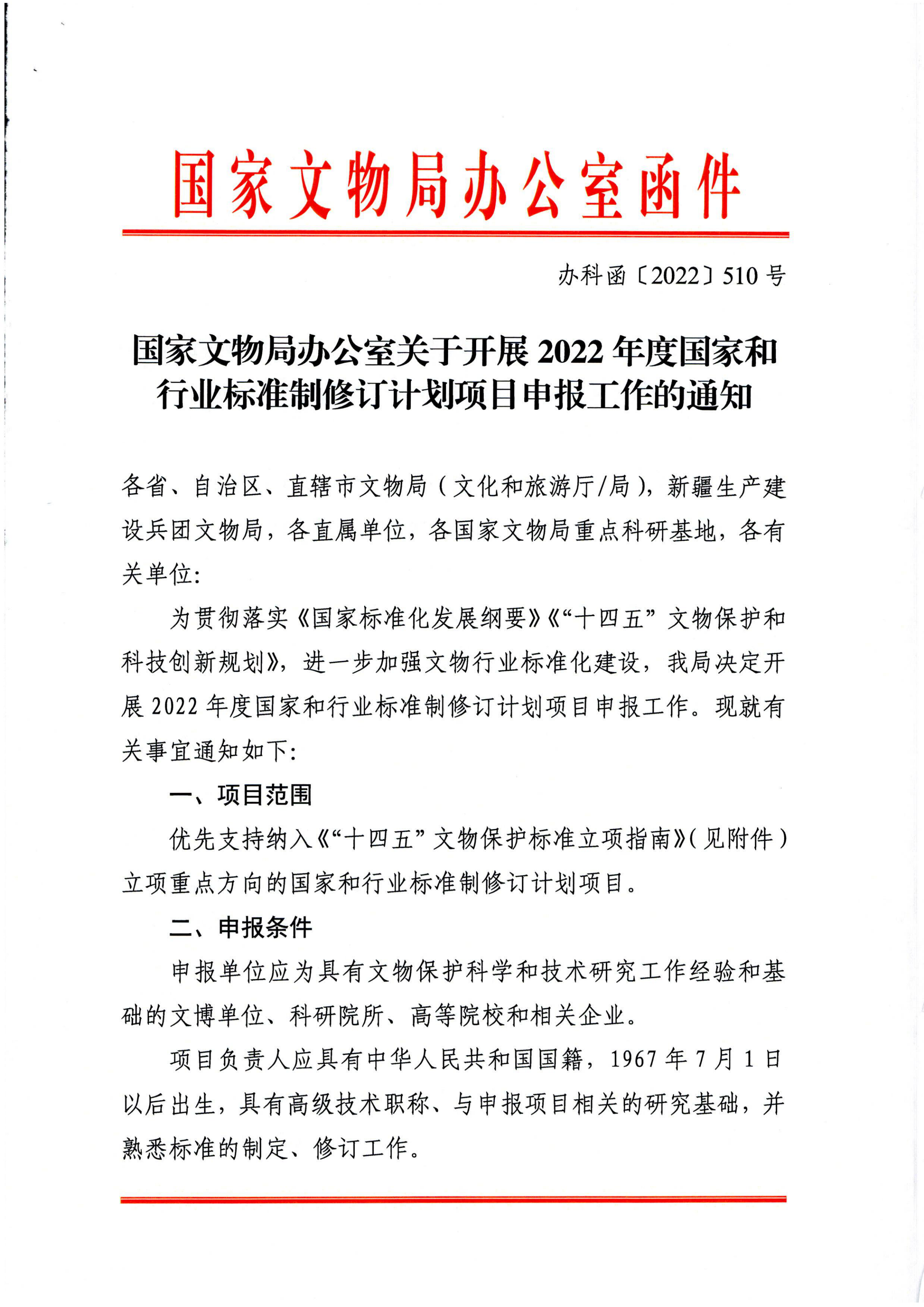 附件:《国家文物局办公室关于开展2022年度国家和行业标准制修订计划项目申报工作的通知》