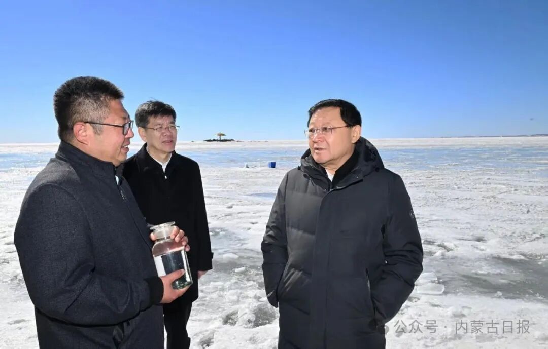 3月30日,自治区党委书记、人大常委会主任王伟中在呼伦湖实地了解生态保护治理情况。草原云·内蒙古新闻网记者 马建兵 摄