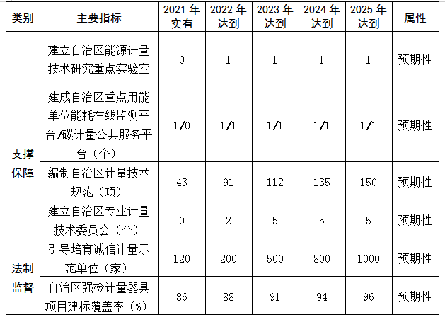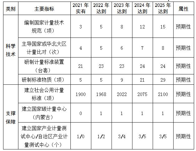 (二)发展目标。到2025年,全区计量科技水平全面提升,碳计量和乳制品产业计量等领域达到国内领先水平,培养一批高水平的计量科研人才,研究一批实用性的计量仪器设备。计量服务保障能力持续增强,在生物技术、新能源、新材料等领域建立国家和自治区产业计量测试中心或重点实验室。计量监督管理效能全面提升,建立新型计量监管模式和制度,推动监管重点从管器具向管数据、管行为、管结果的全链条计量监管体制转变,协同推进计量工作的体制机制进一步完善。