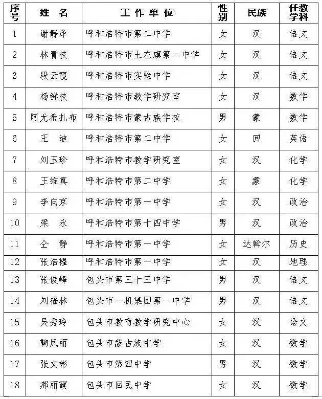 自治区第十批中小学特级教师名单
