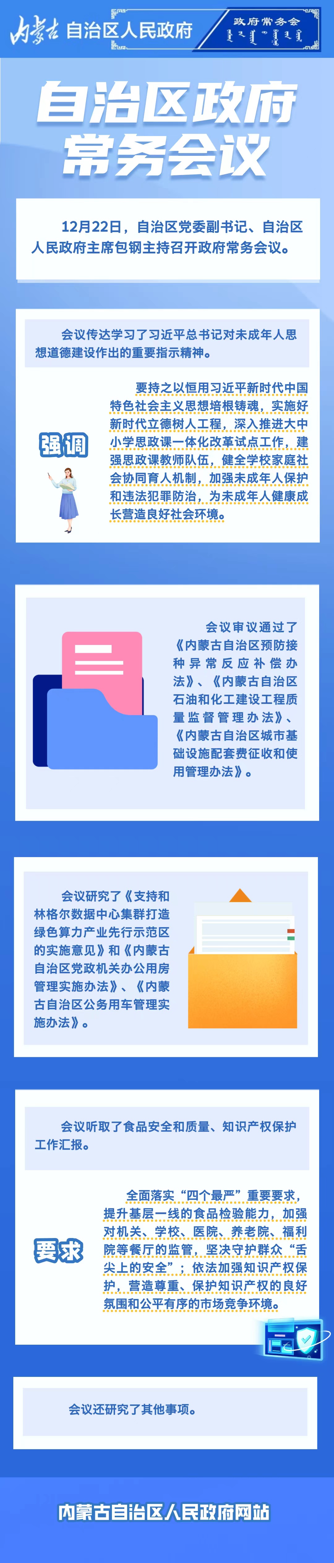 12月22日,自治区党委副书记、自治区人民政府主席包钢主持召开政府常务会议。