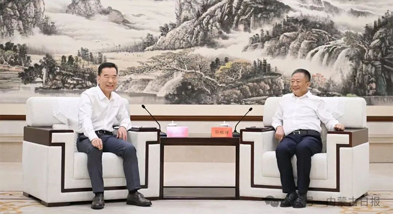 9月11日,自治区党委书记孙绍骋在呼和浩特会见明阳集团党委书记、董事长张传卫。草原云·内蒙古新闻网记者马建兵 摄