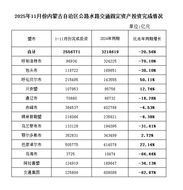 信息来源:内蒙古自治区交通运输厅