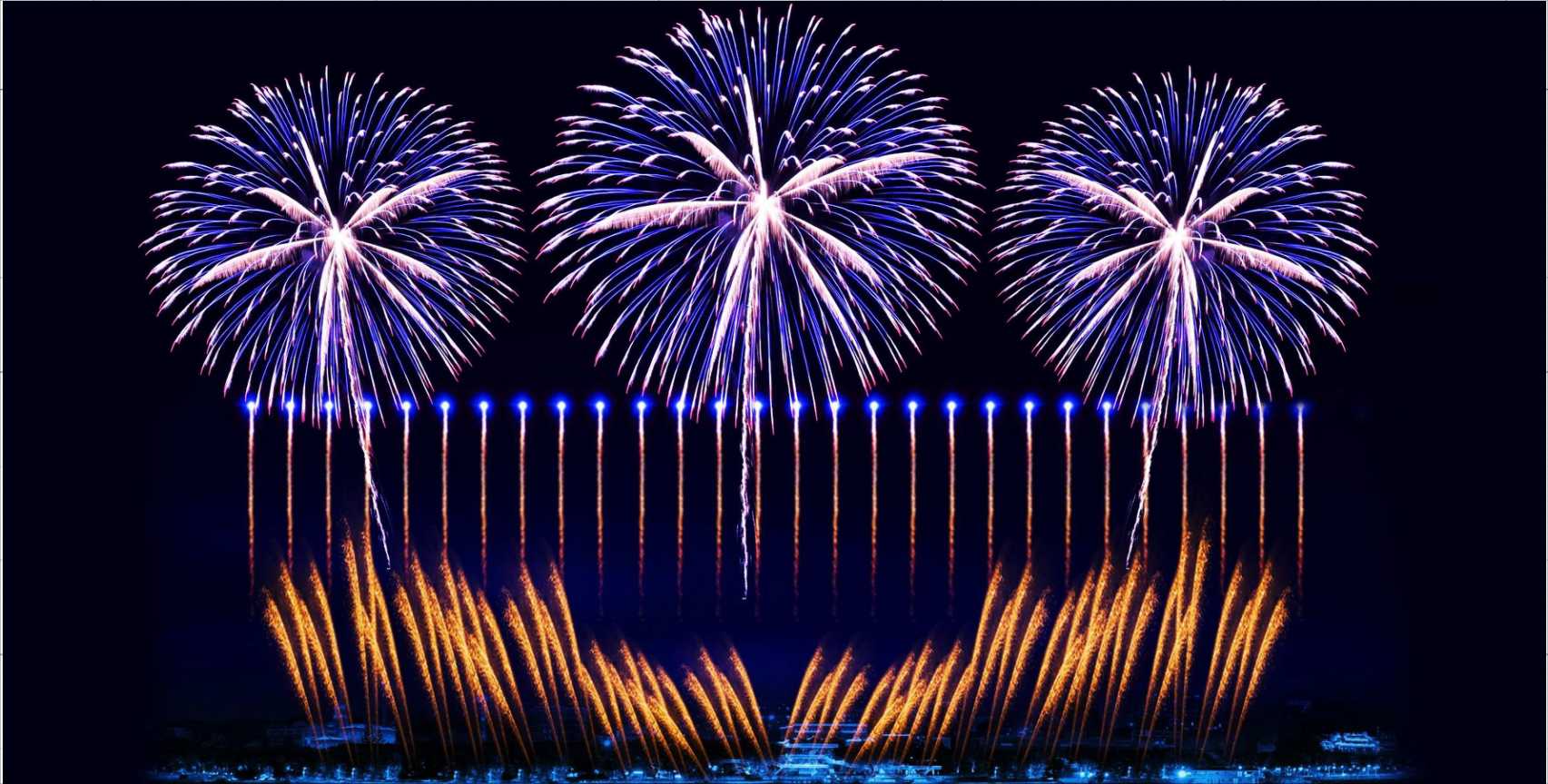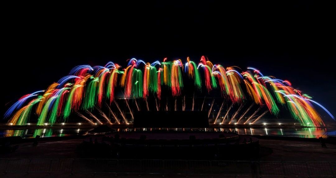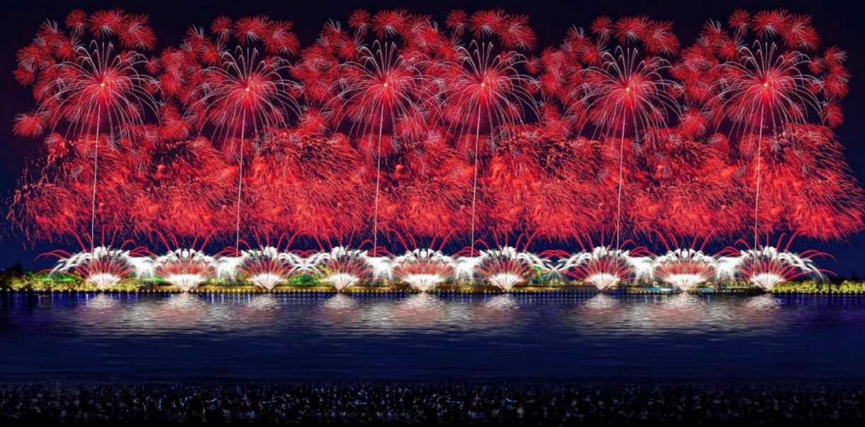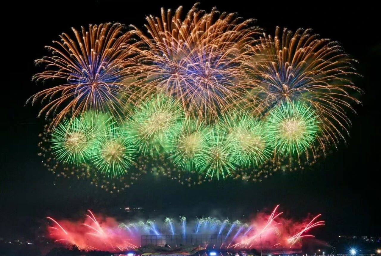 璀璨焰火映星河,流光溢彩闹元宵。共赴一场烟花之约,感受城市蓬勃发展脉动。