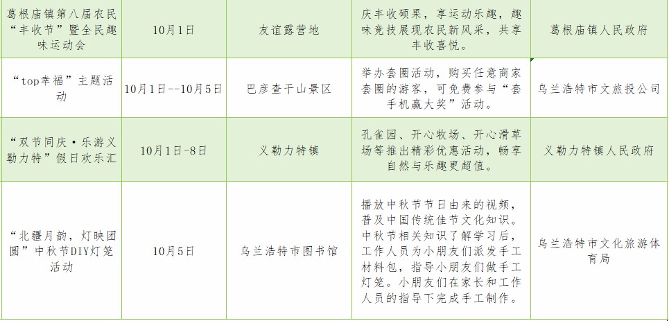 脚步丈量诗与远方,心动就在乌兰浩特!这个假期,让我们相约乌兰浩特,共赴秋日之约,留下属于您的独特记忆。精彩活动不间断,暖心服务不停歇——我们已准备好迎接您的到来!赶紧收藏这份活动清单,转发给身边的小伙伴,十月乌兰浩特,不见不散!
