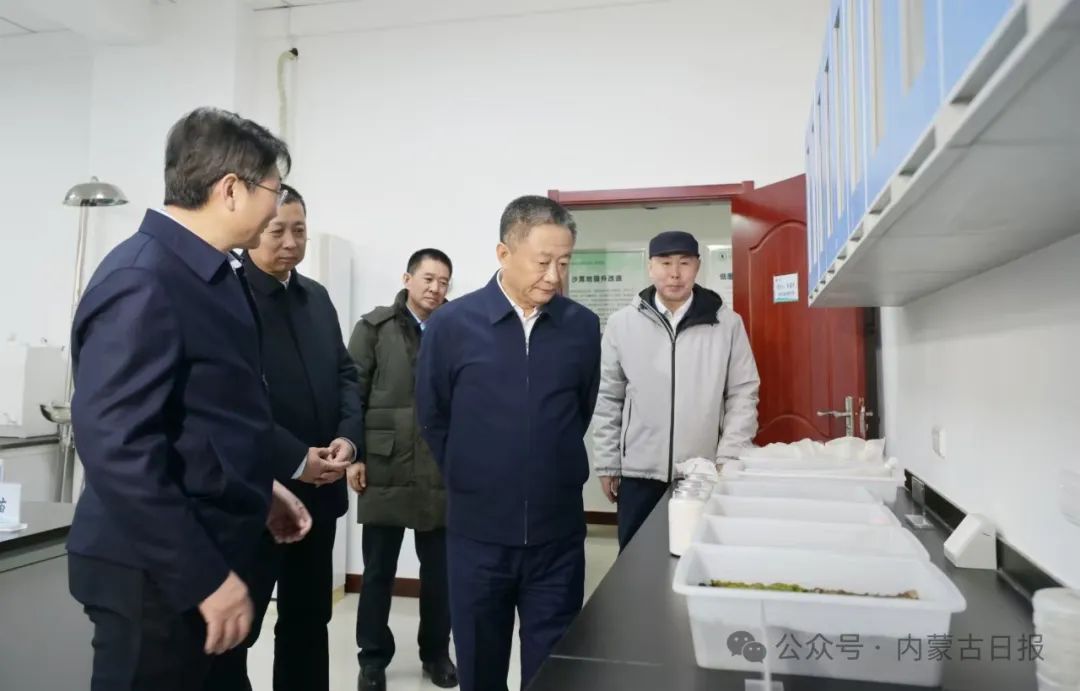 12月31日,自治区党委书记孙绍骋走进林科院沙地生物资源保护与培育国家林草局重点实验室,详细了解防沙治沙技术研究、沙化土地综合治理、林草产品研究及成果转化等情况,就一些关心关注的事项与科研工作者进行深入交流。草原云·内蒙古新闻网记者 马建兵 摄