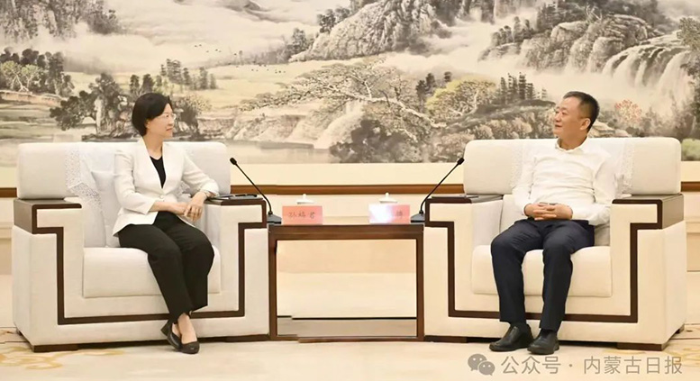 6月23日,自治区党委书记孙绍骋在呼和浩特会见海关总署党委书记、署长孙梅君。草原云·内蒙古新闻网记者马建兵 摄